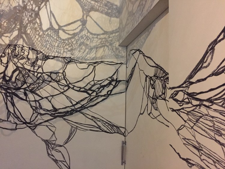 ‘Empathy Channels’ is an ongoing series of performances, exhibitions and site-specific installations based around hand-knotted, soft-sculptural expanses woven from wool, rope, twine, cotton, and other found fibers. Woven into an intricate pattern of delicate mesh and gnarled woolen lumps, the work began as a collection of ‘suits’ to be worn in participatory performance by dancers and meditation specialists.